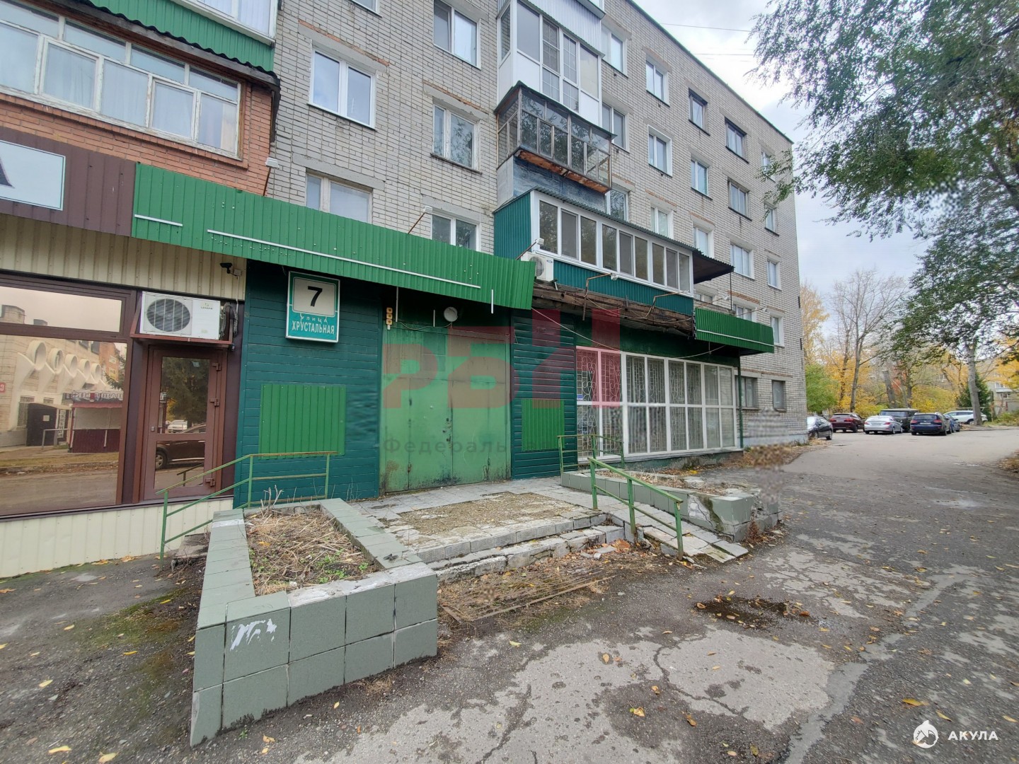 Хорошая видимость помещения с первой линии ул. Хрустальная.