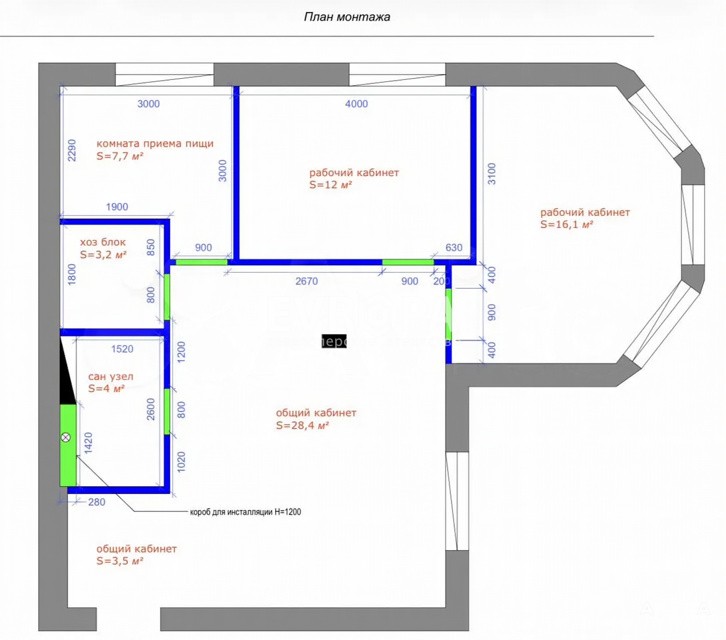 ✅ Продуманное зонирование: Площадь 77, 3 м² разделена на 2 изолированных кабинета и просторный зал (Open Space). Идеально для разделения отделов или организации переговорной.