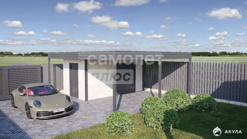 -НАВЕС с площадкой ПОД АВТОМОБИЛЬ, забор по периметру участка с калиткой и откатными воротами.