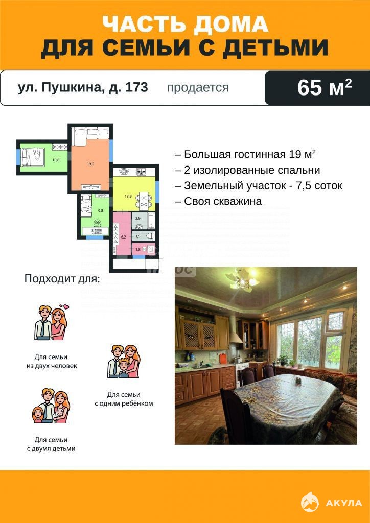 -для дружной семьи с одним или двумя детьми;