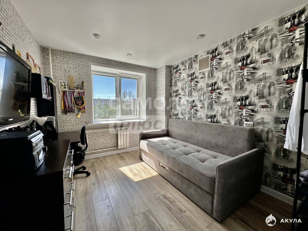 Две изолированные комнаты: одна со встроенным гардеробным шкафом, в другой проведены коммуникации для кухни (подробности расскажем при просмотре).