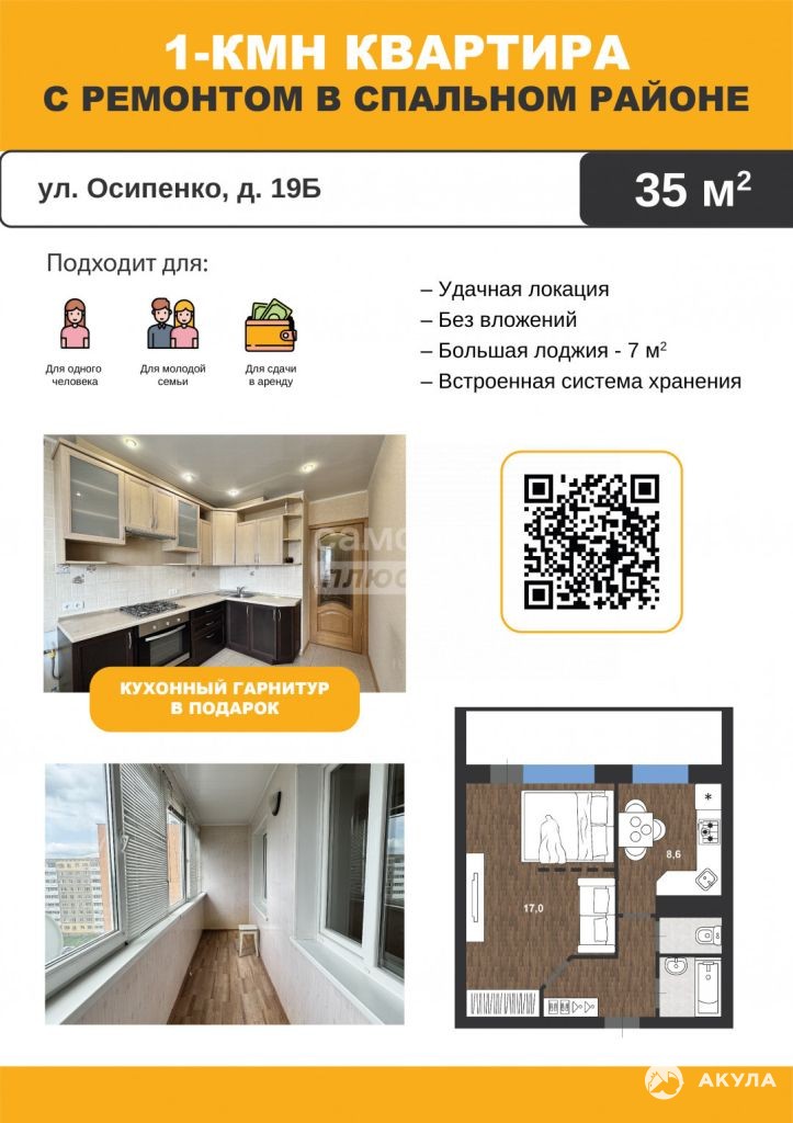 Эта квартира-ваш шанс стать обладателем комфортного жилья без дополнительных вложений. Звоните прямо сейчас и приходите на просмотр!