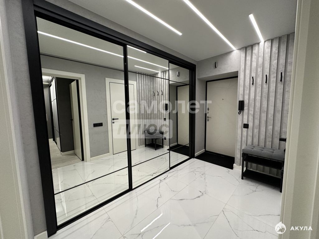 -ПРОСТОРНАЯ ПРИХОЖАЯ с большой встроенной системой хранения с зеркальными фасадами.