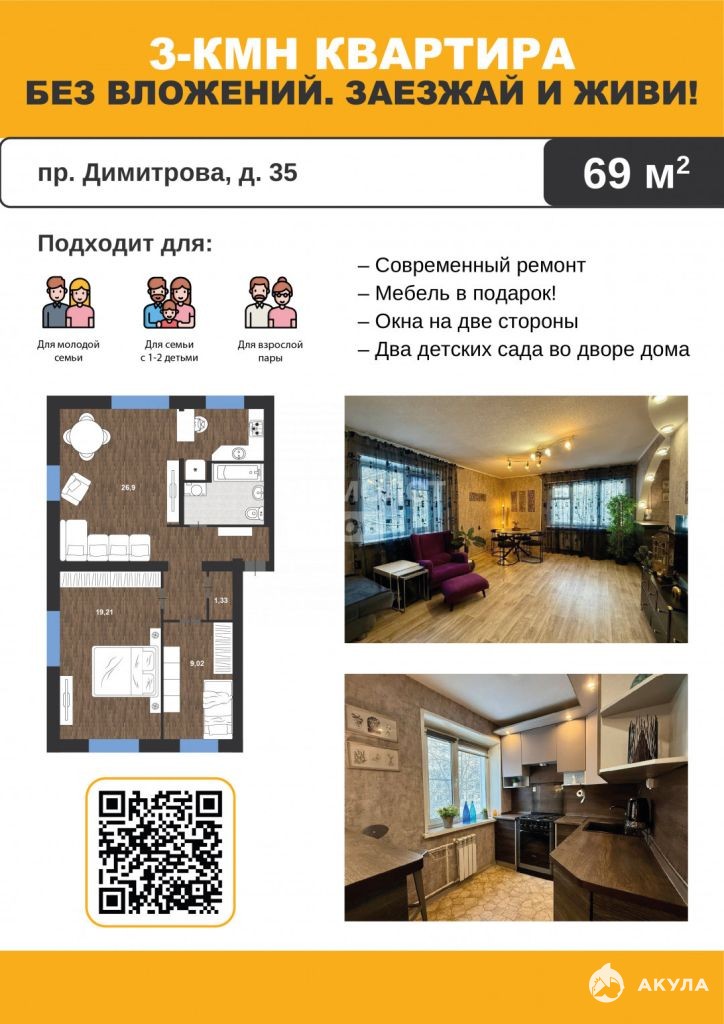 - 69 м²