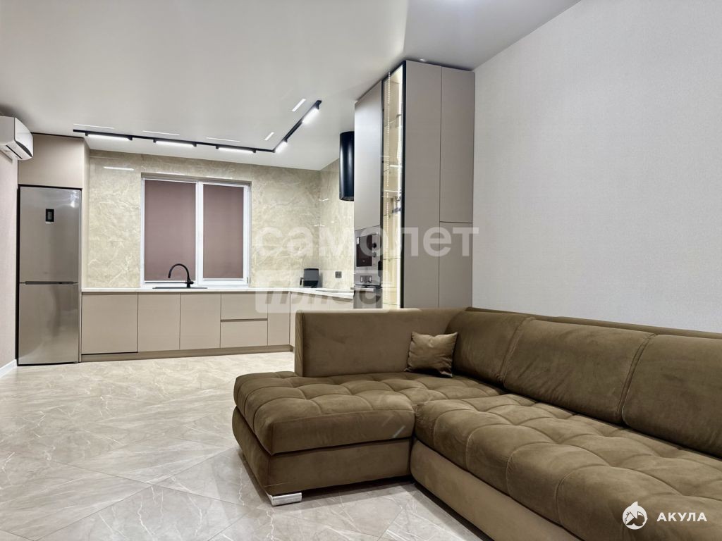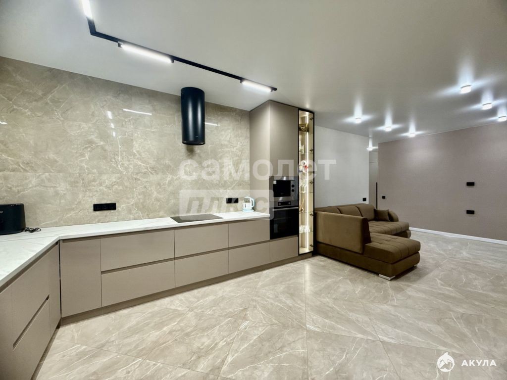 Уютная КУХНЯ-ГОСТИНАЯ с местом для приема гостей в виде лаунж-зоны с диваном. Зона готовки просто мечта любой хозяйки, кухонное пространство со встроенной техникой оснащено всем необходимым и готовка будет только в удовольствие.