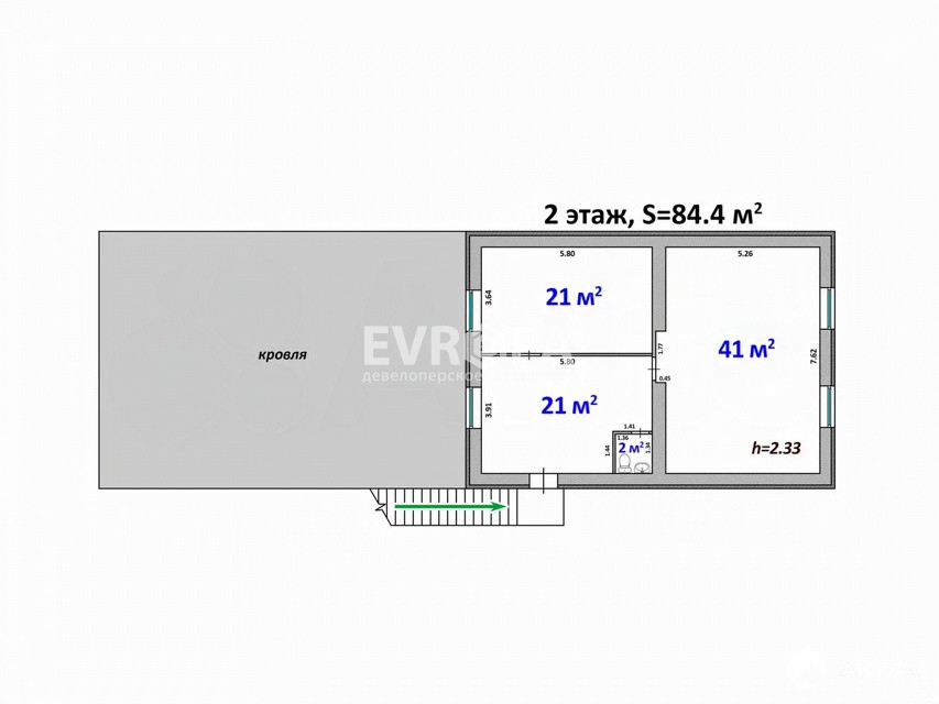 Высота потолков: 1 этаж — 3.50 м, 2 этаж — 2.30 м.