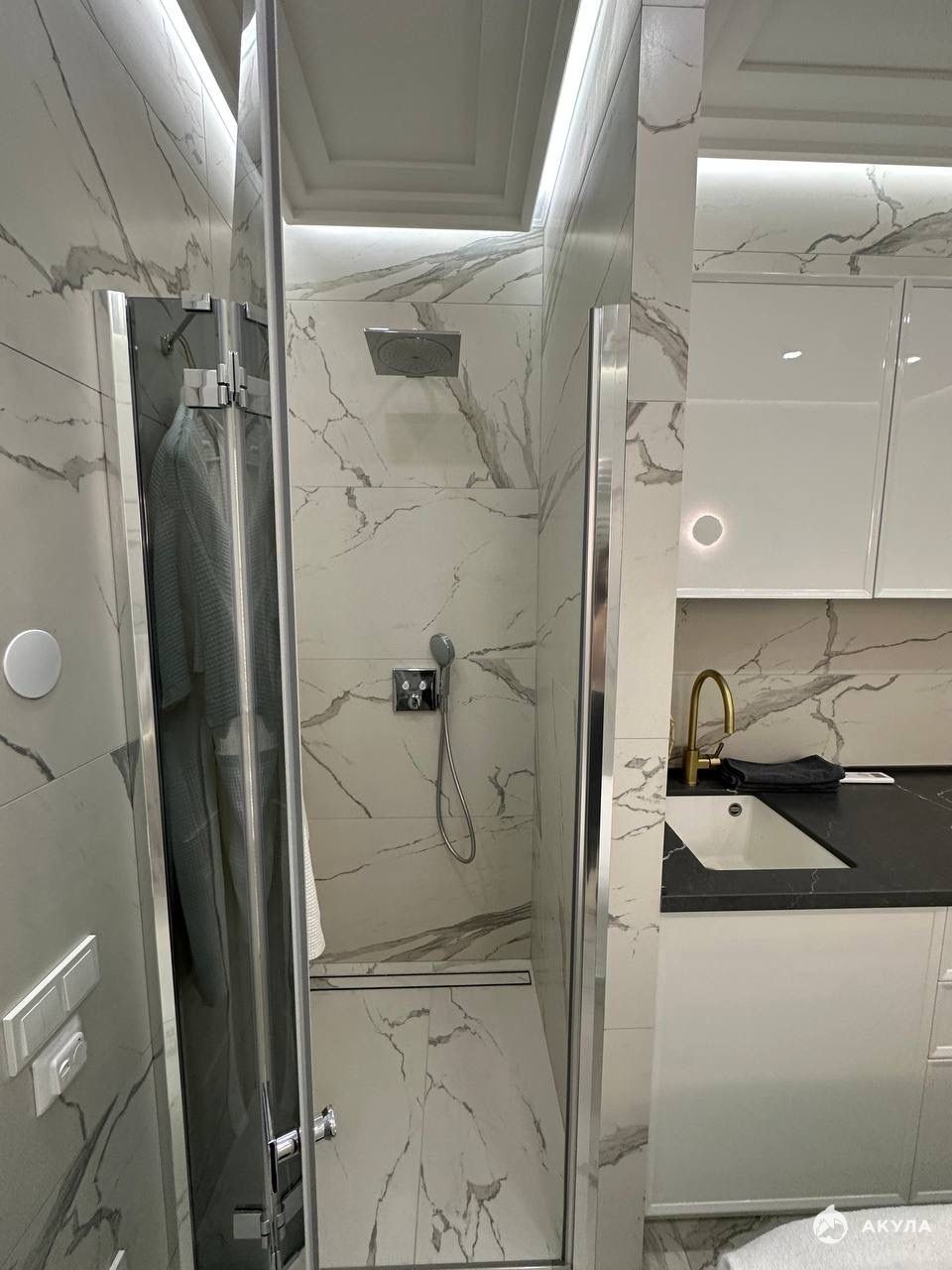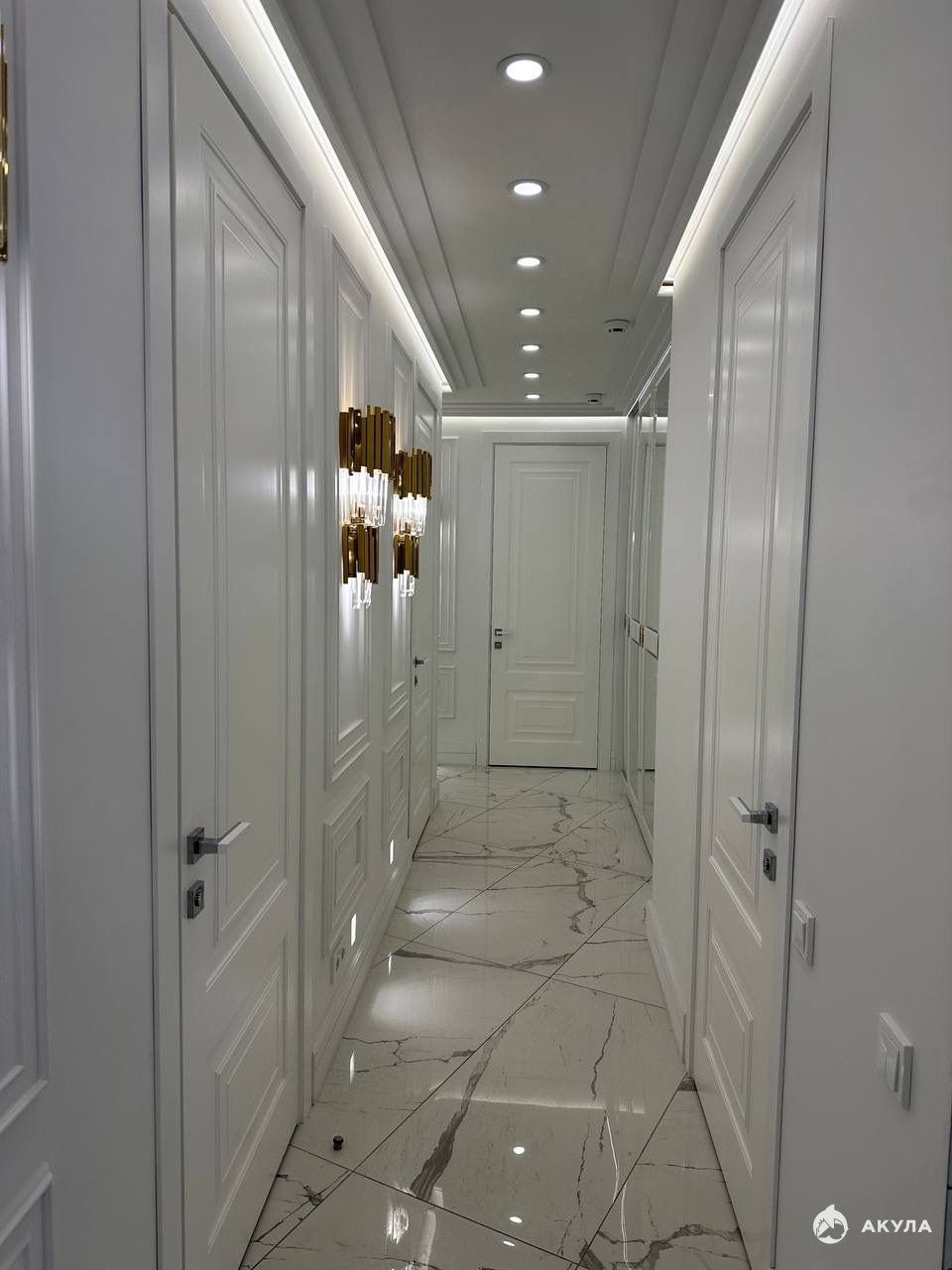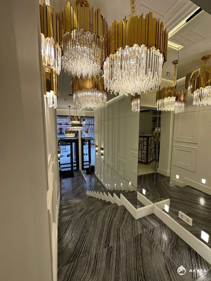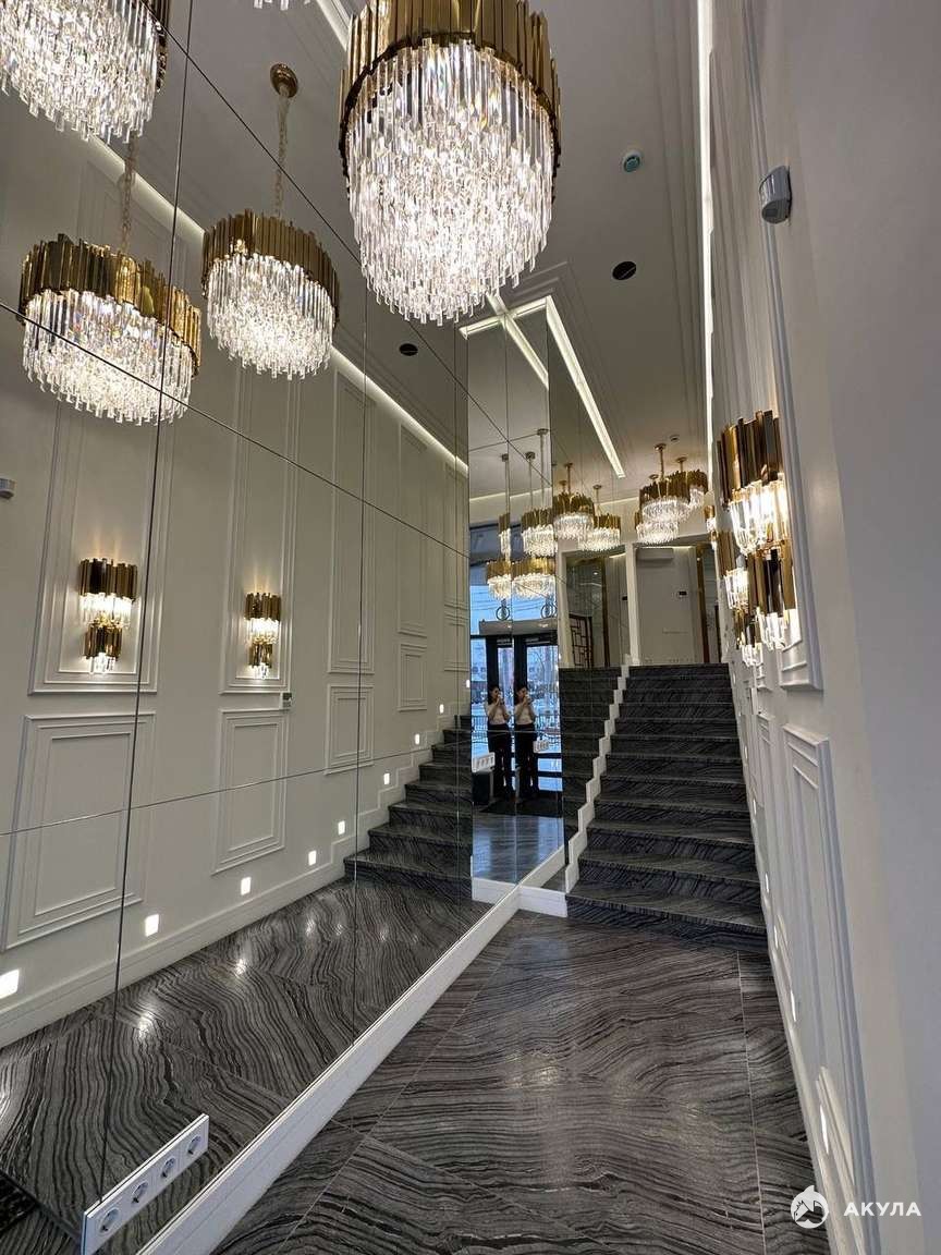 Безупречная отделка: турецкая напольная плитка, итальянская стеновая плитка, потолки "парящий" из ГВЛ, гипсовые молдинги и плинтуса, выполненные с высочайшим качеством. Весь периметр помещений украшен точечной подсветкой, создающей уют и престиж.