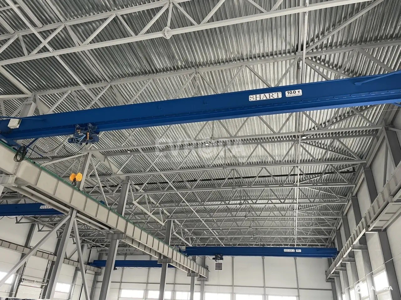 Грузоподъемность: В здании уже установлены и готовы к работе 4 мостовых крана по 10 тонн каждый.