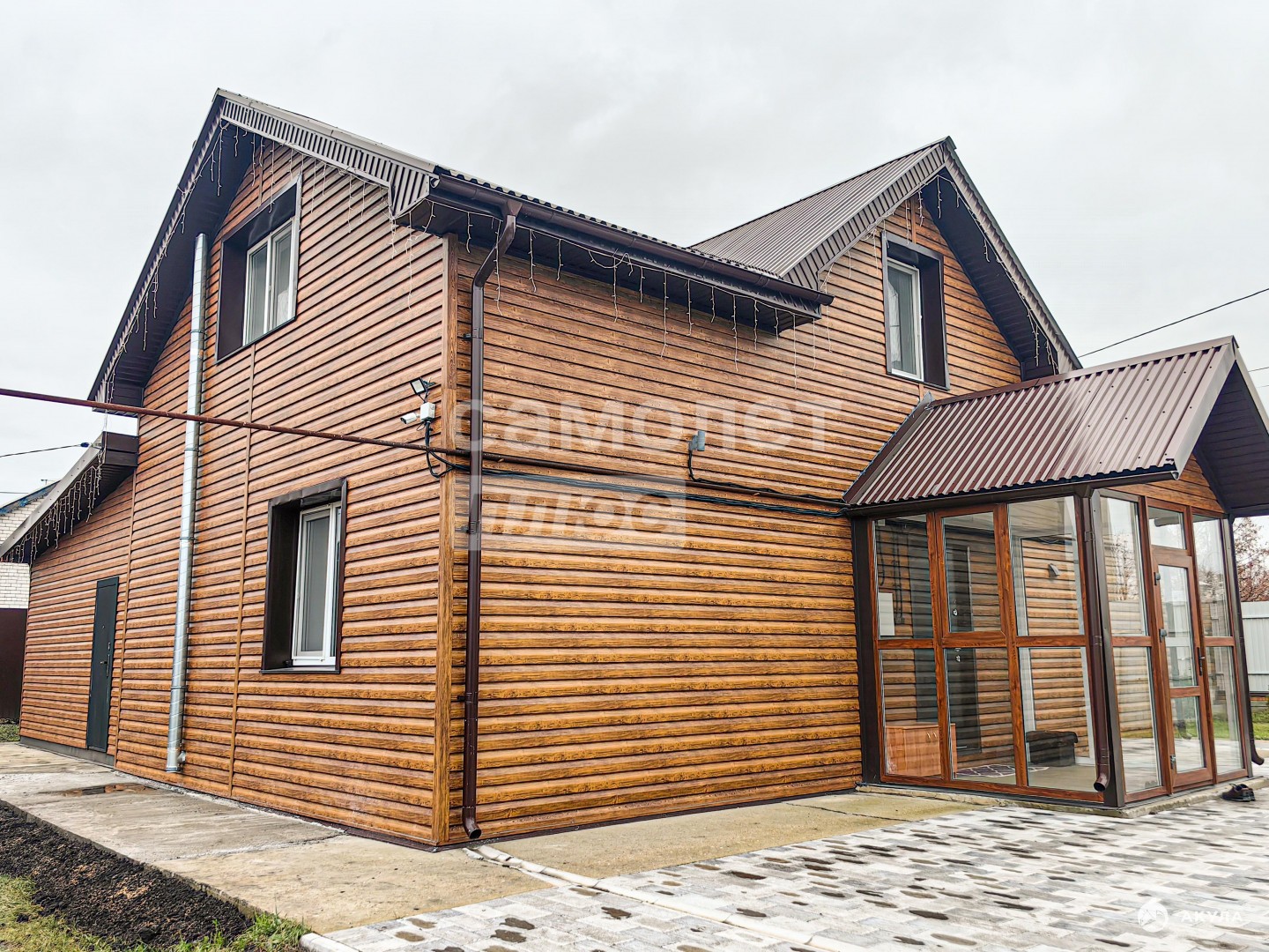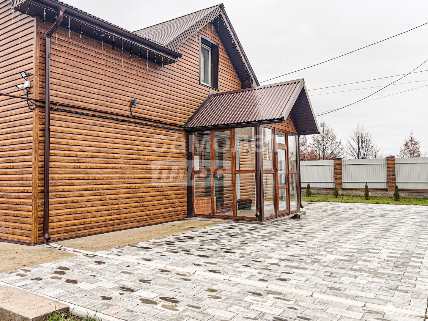 по периметру дома проложена брусчатка – чисто, аккуратно и практично в любую погоду.