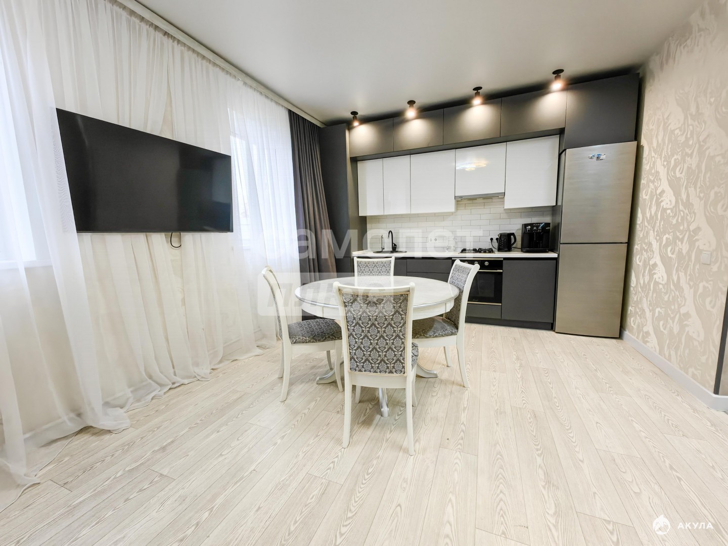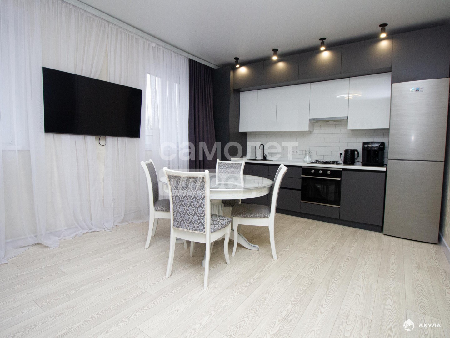 уютная кухня-гостиная , место для семейных обедов .