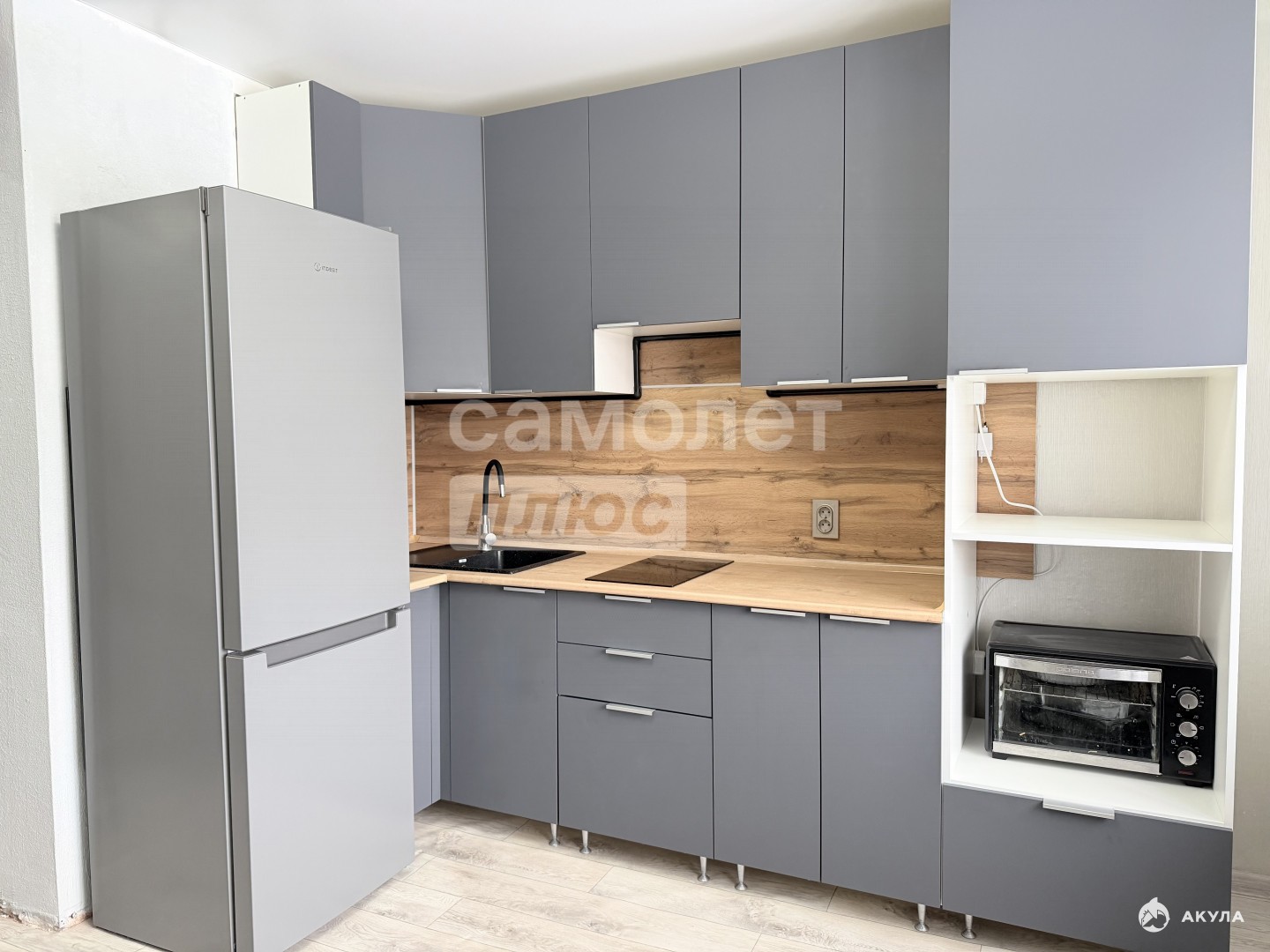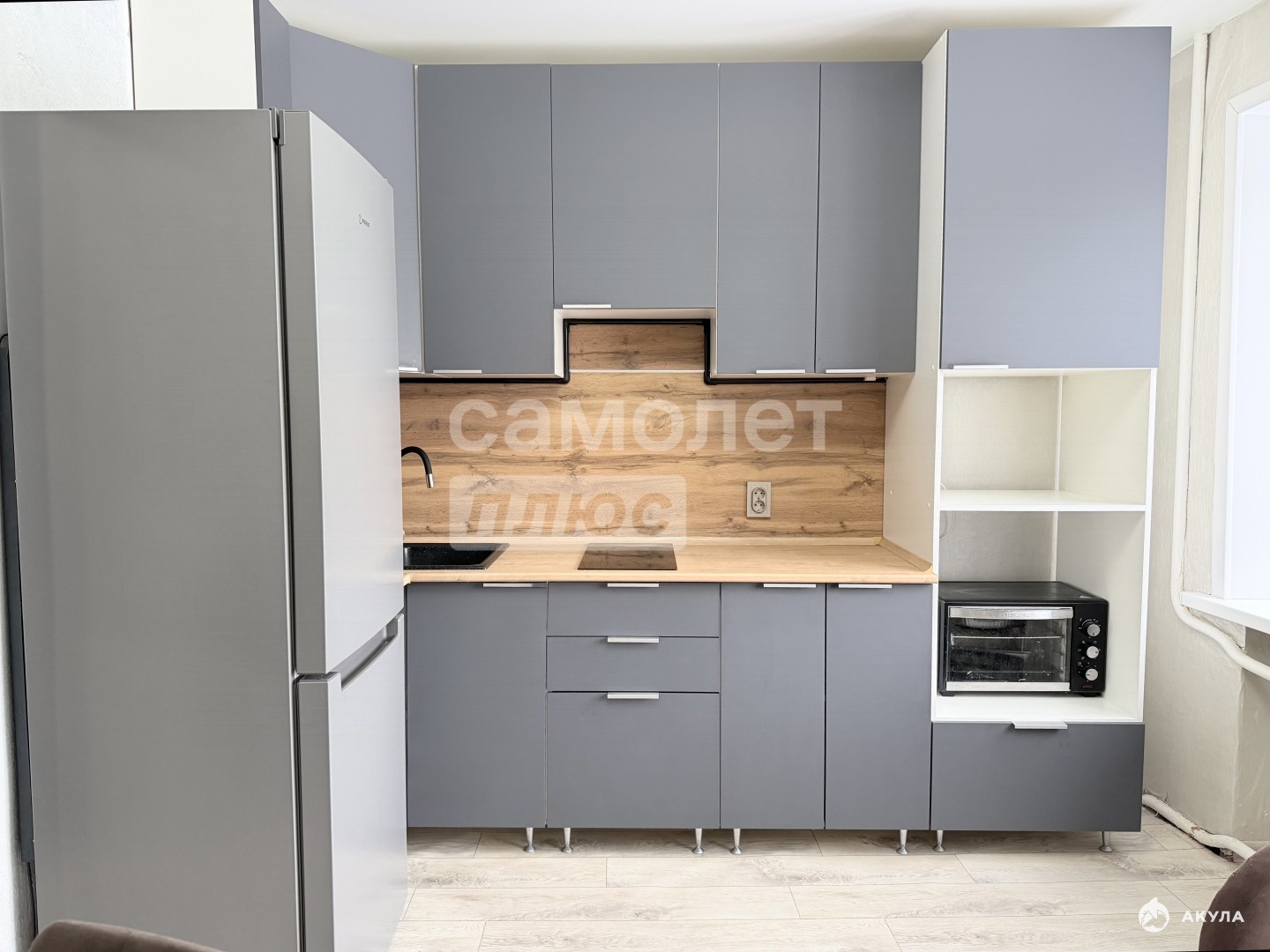 -кухонный гарнитур с индукционной варочной поверхностью, духовой шкаф, комод с полочками