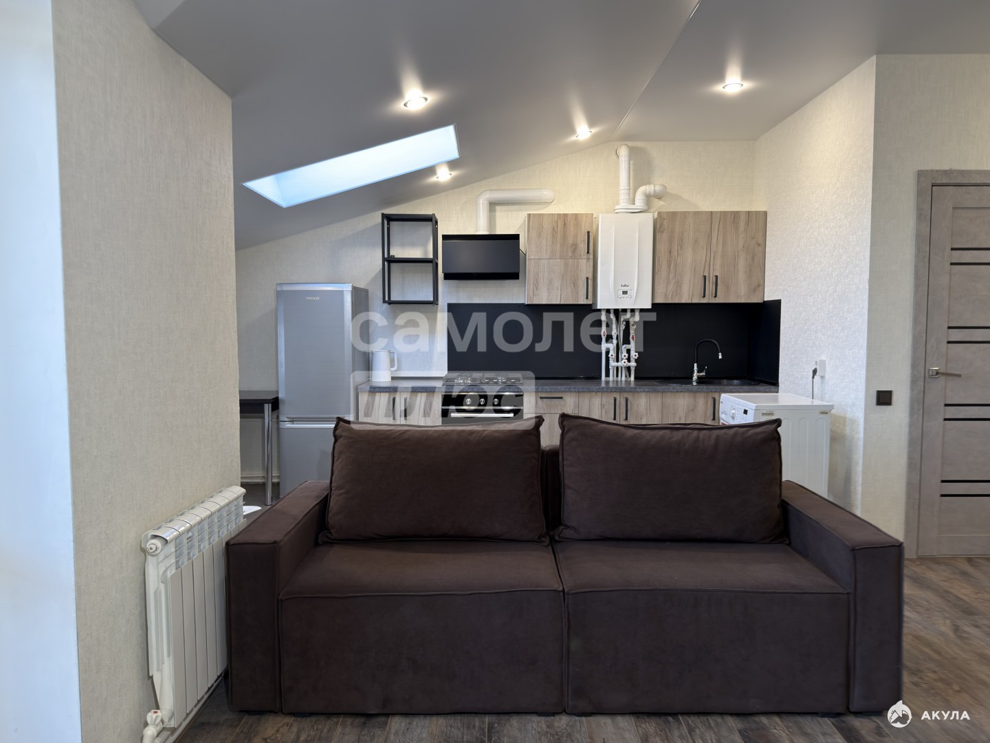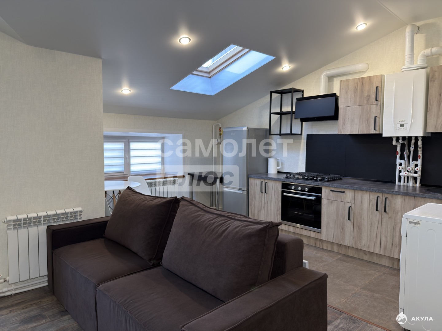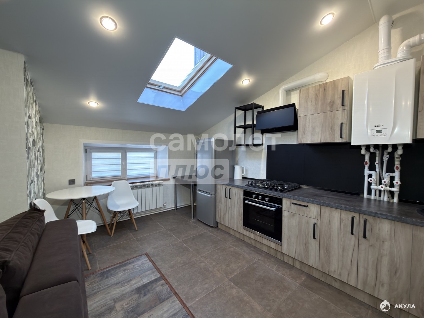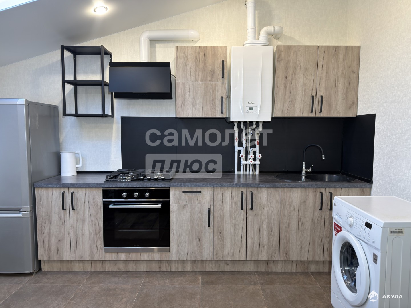 Кухня оборудована современным кухонным гарнитуром. В квартире собственный газовый котел, а значит коммунальные платежи - минимальные, и горячая вода - круглый год.