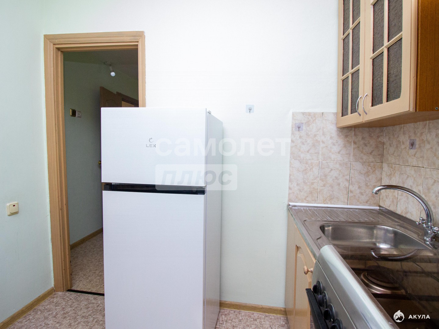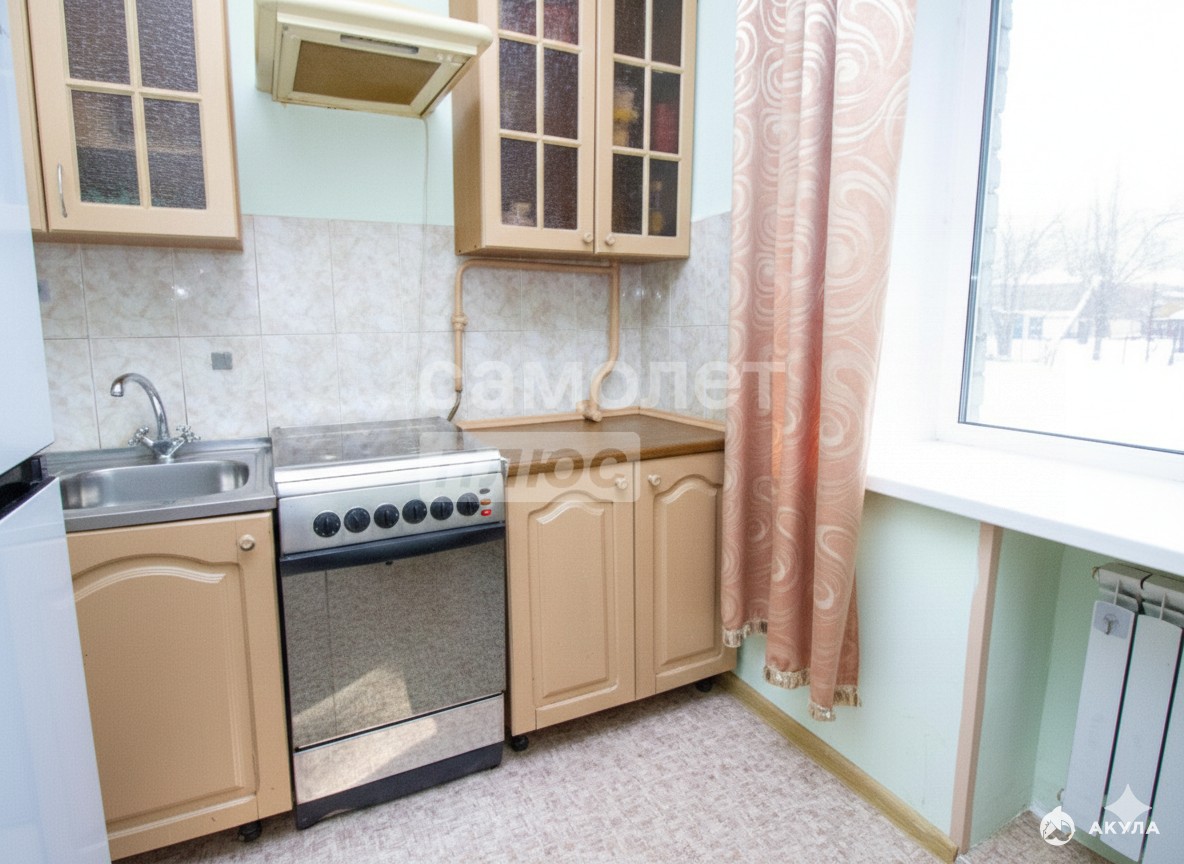 Кухня квадратной формы. Сан узел совмещенный.
