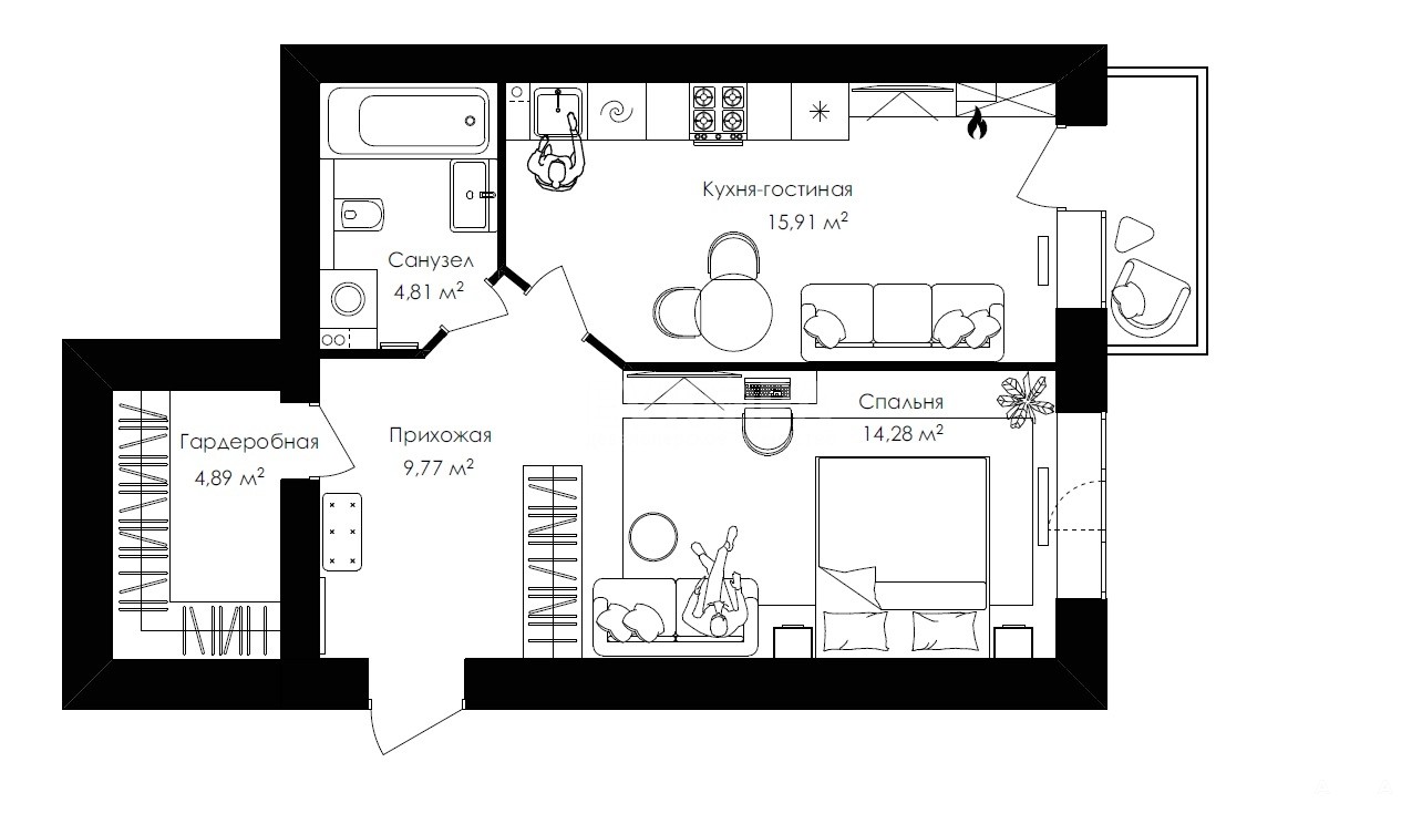 Формат: Евродвушка со свободной планировкой — зонируйте пространство под свои задачи.