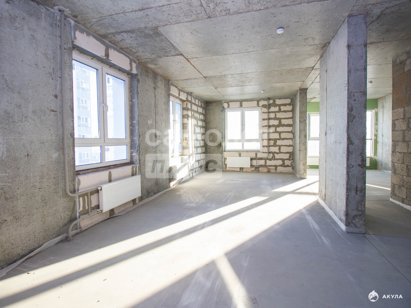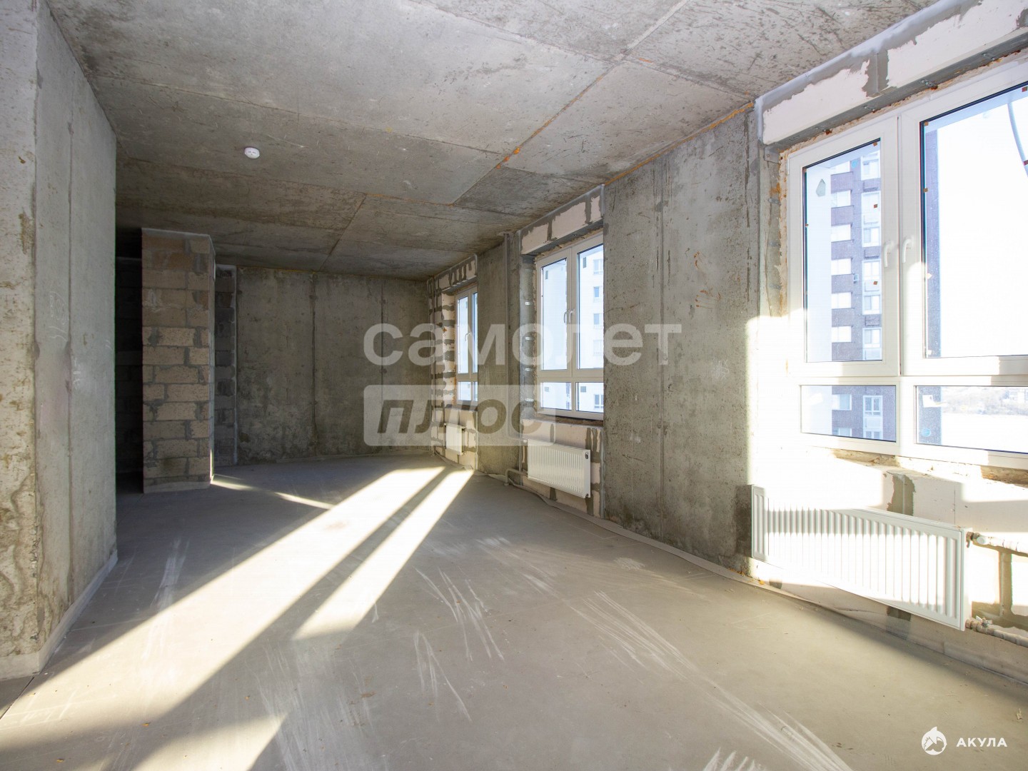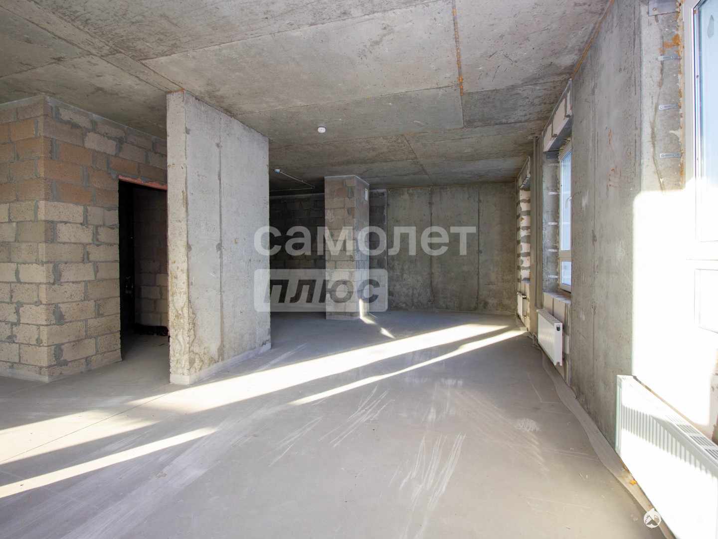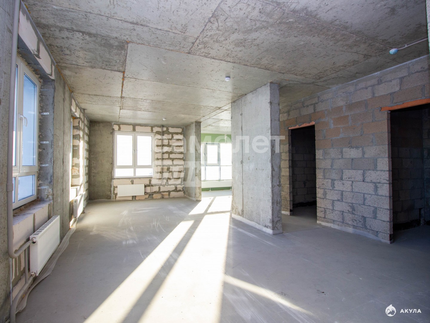 Планировка — простор для творчества: перед вами большое пространство (базовая отделка, стяжка, электрика подведена).
