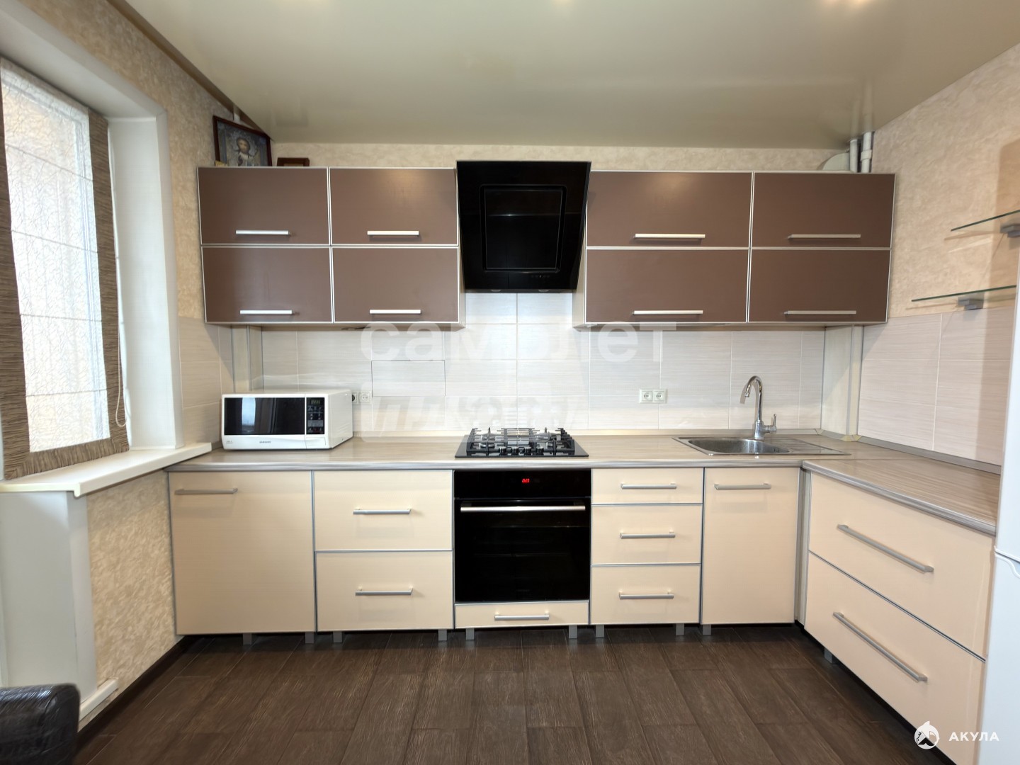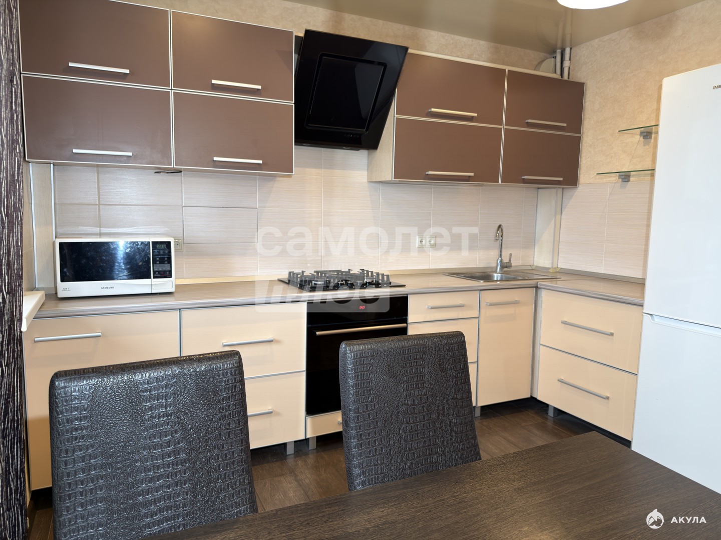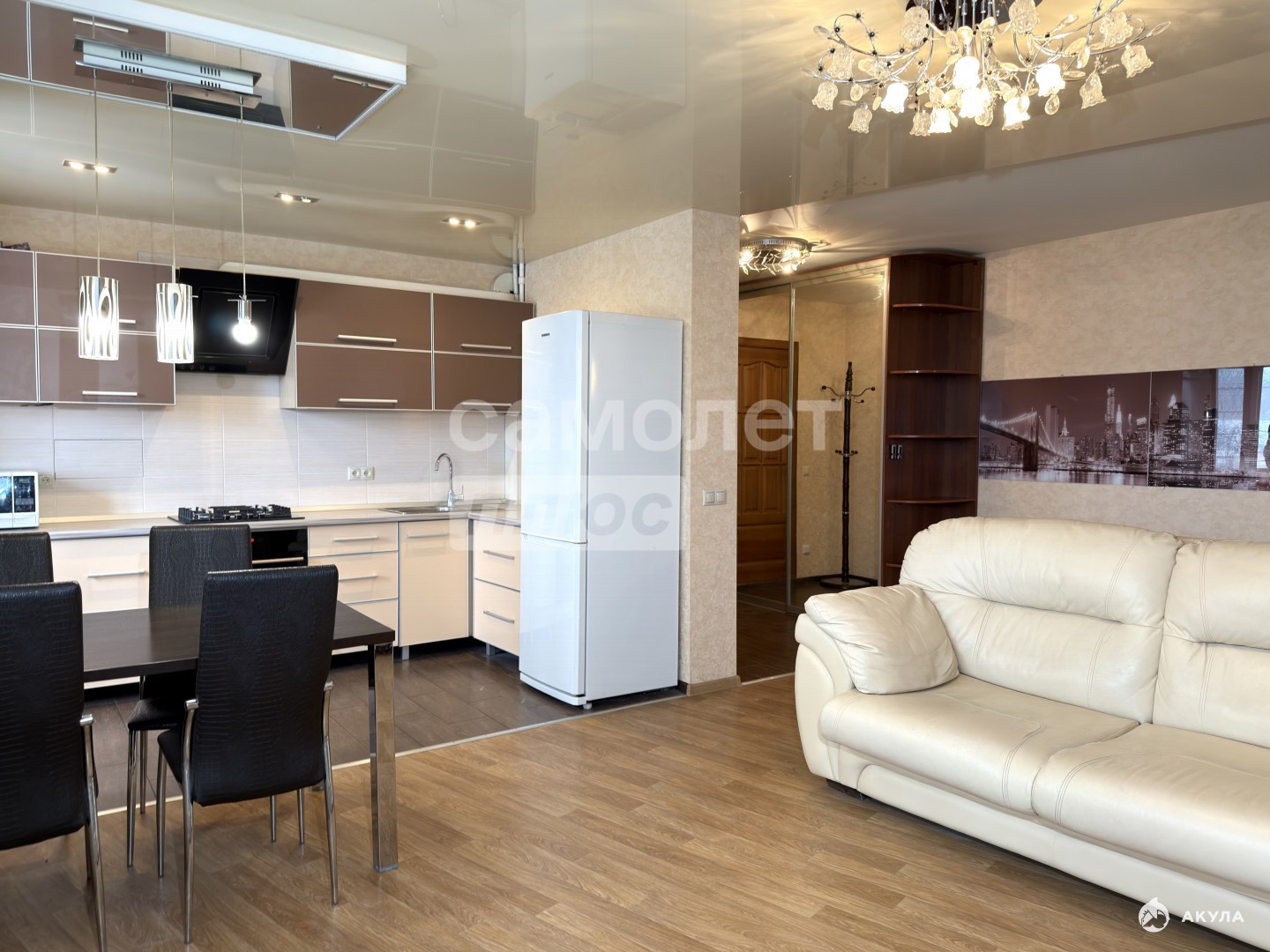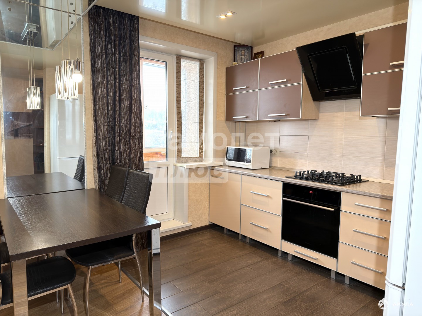 Кухня объединена с гостиной и составляет площадь более 30м2 (перепланировка узаконена)
