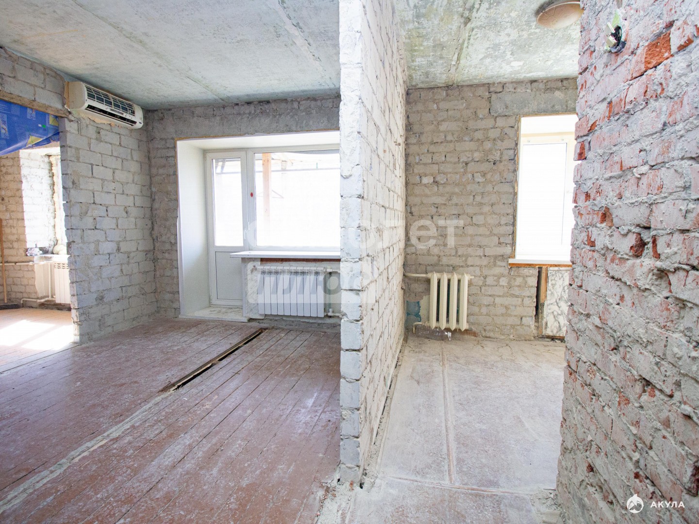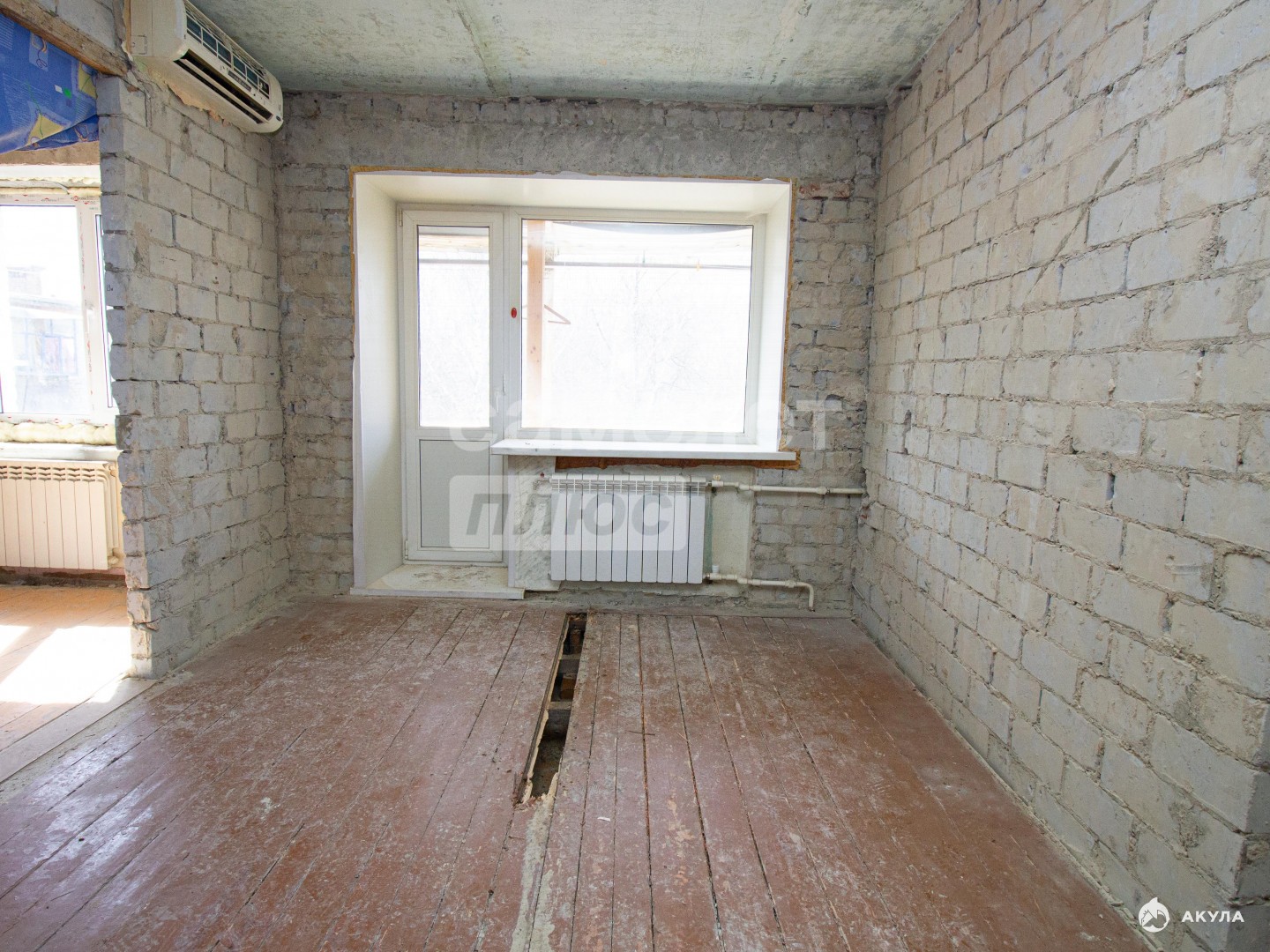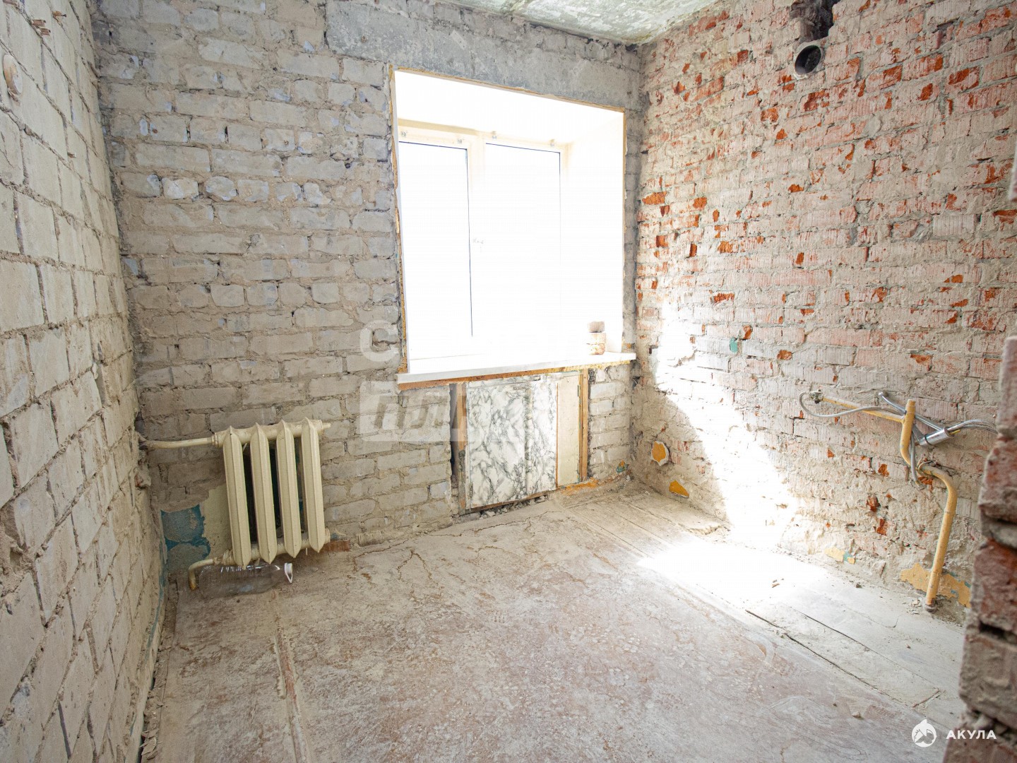 Подготовлена под чистовой ремонт: стены очищены от старой штукатурки, установлены пластиковые окна.