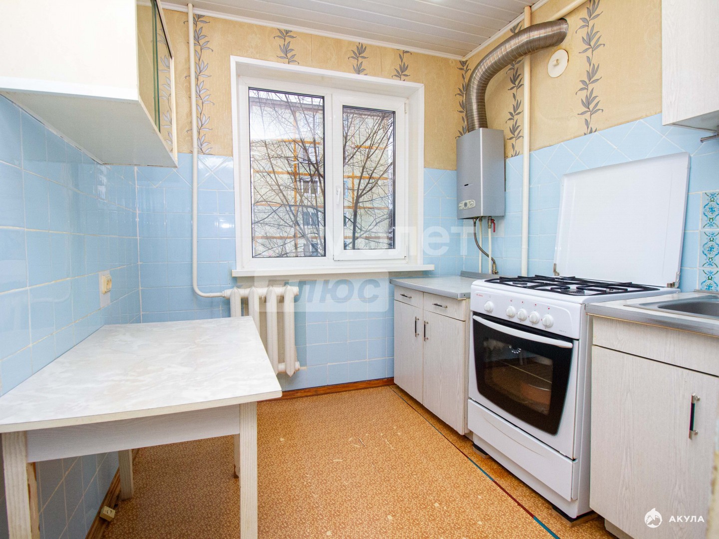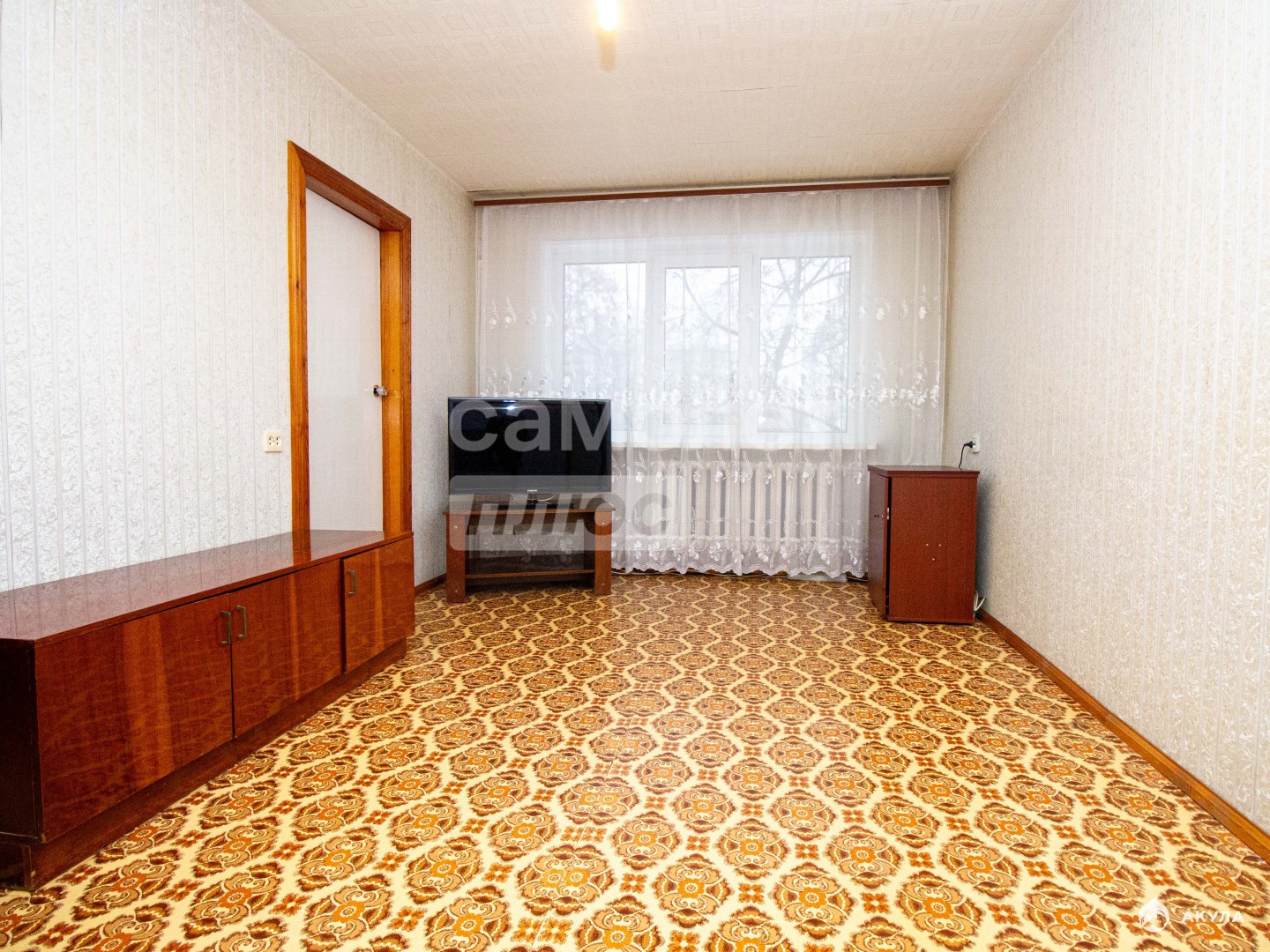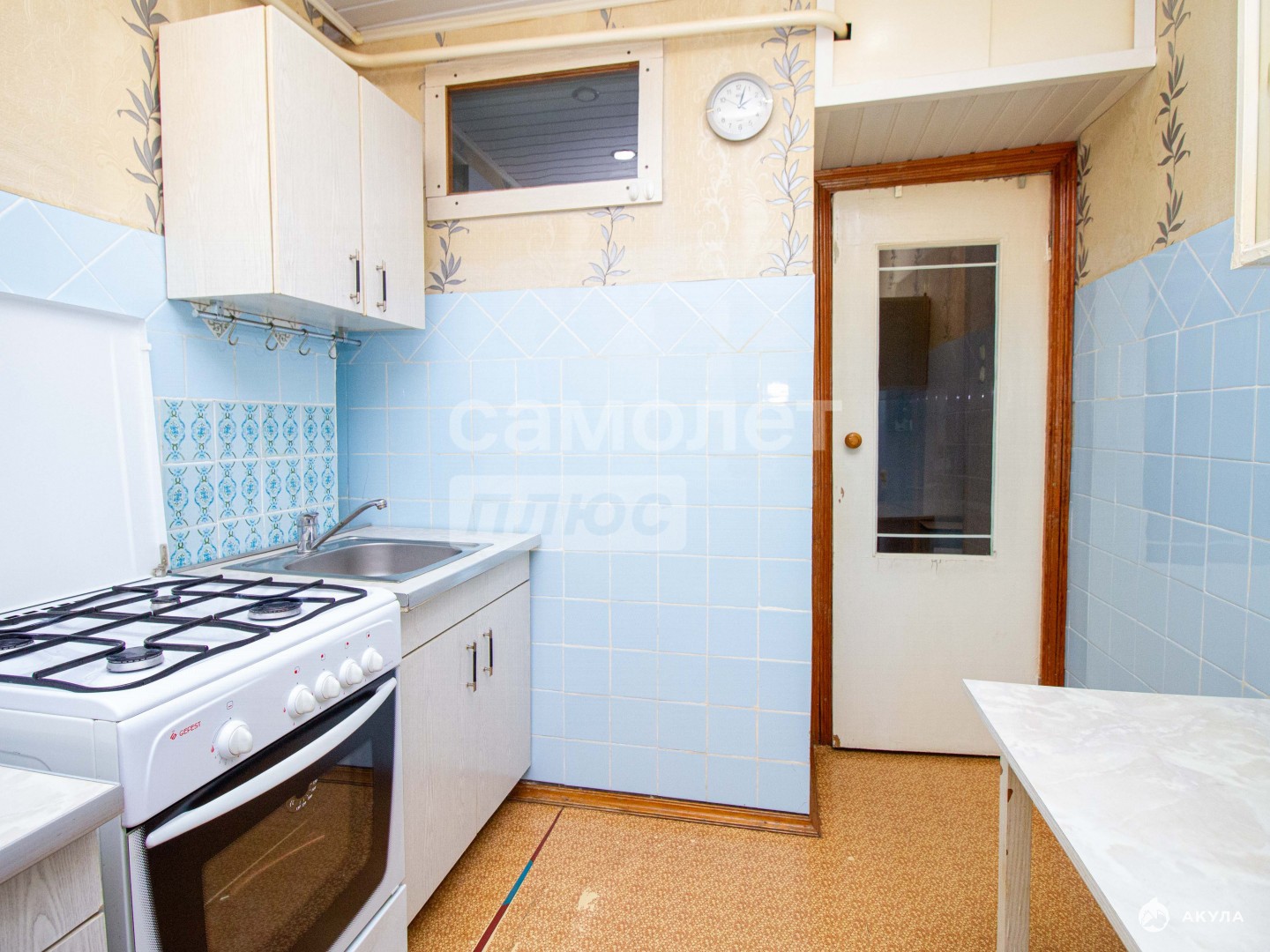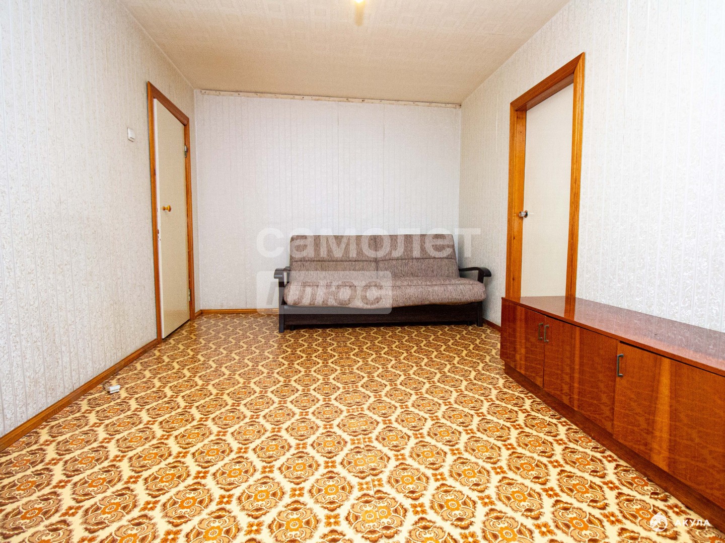 -на стенах обои, на полу линолеум,