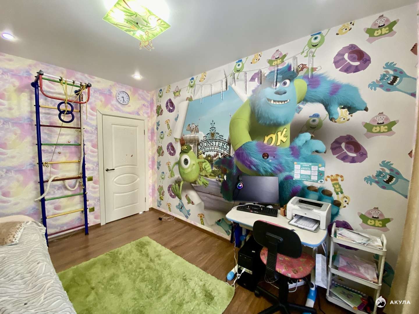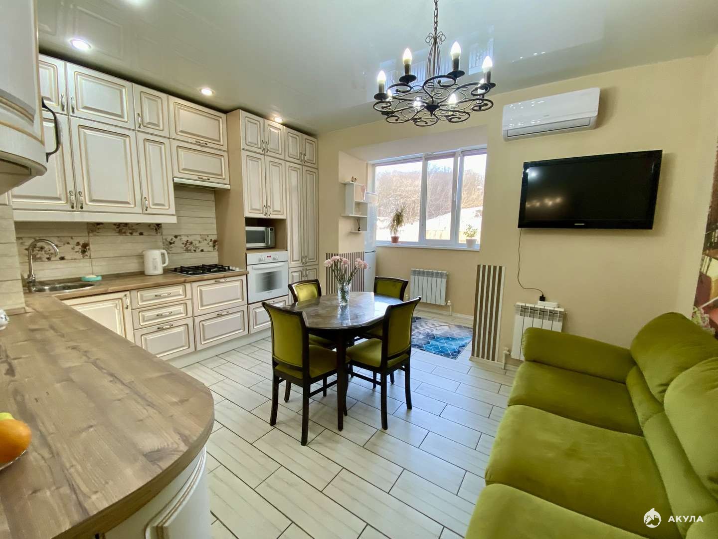 Квартира расположена в тихом и зеленом месте в центре города, вдали от шумных дорог. Большая зеленая территория, двор «без машин», видеонаблюдение, шлагбаум, большая парковка.